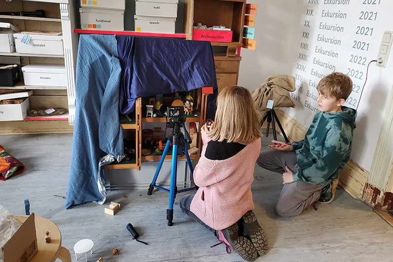 Wie man leblose Dinge in einem Stop-Motion-Film bewegt, konnten die Kinder von den beiden Workshopleiterinnen Mathilde Scholz und Johanna Ickert in dem Ferienworkshop im Oderbruch Museum Altranft lernen.